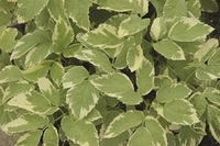 Fast spreading variegated leaves with small white flowers.